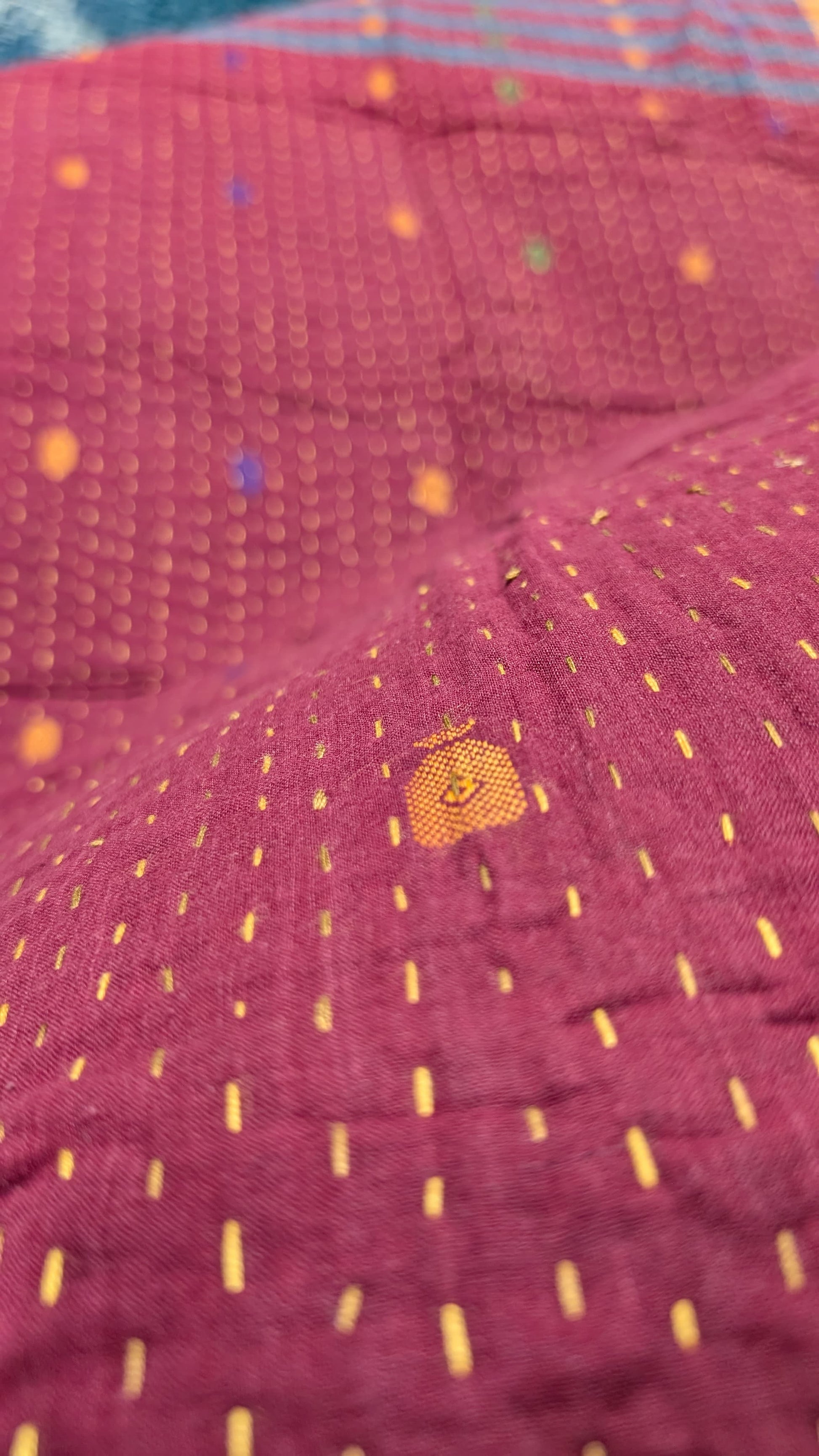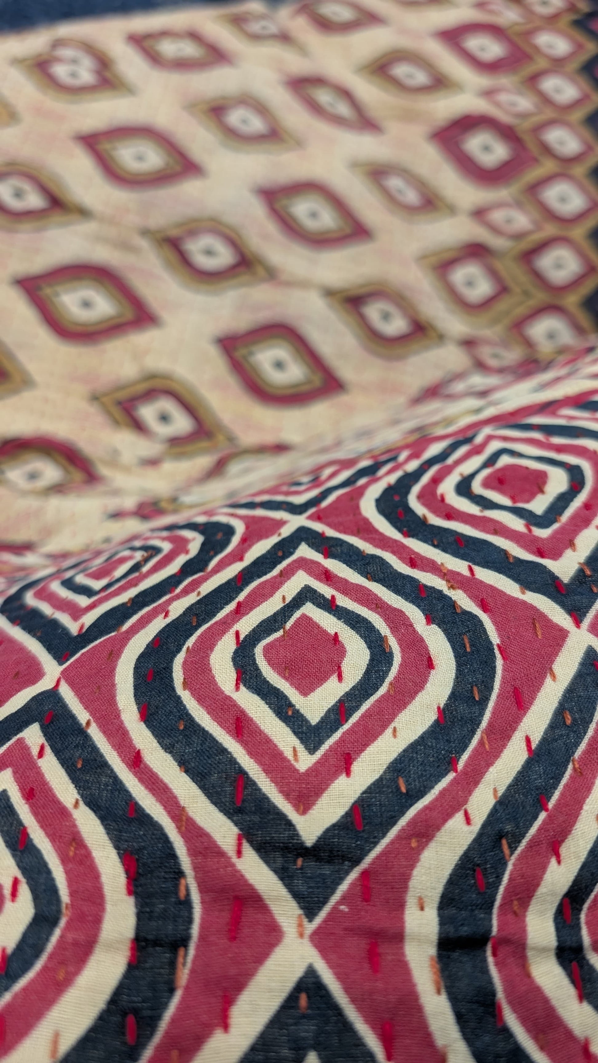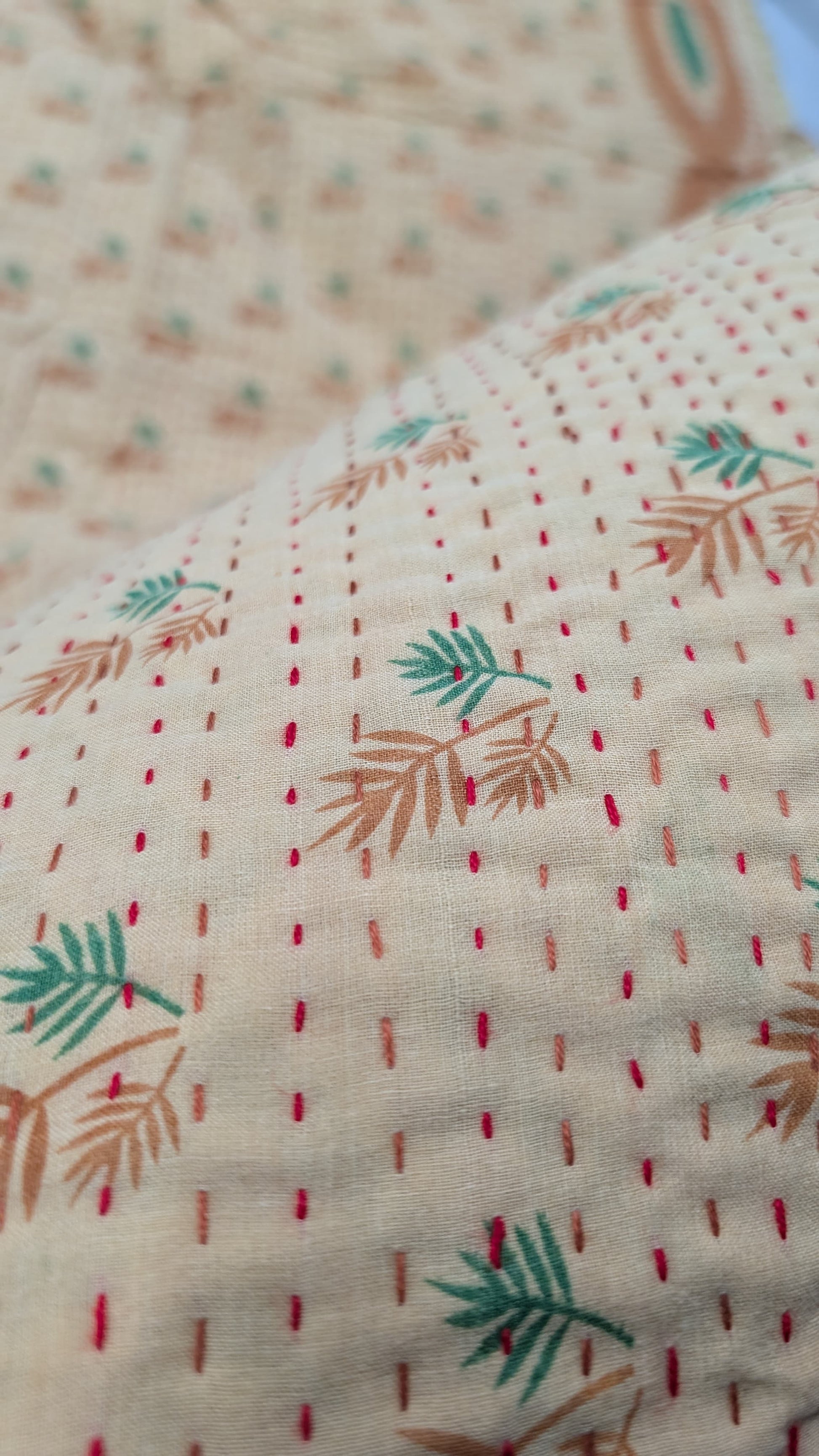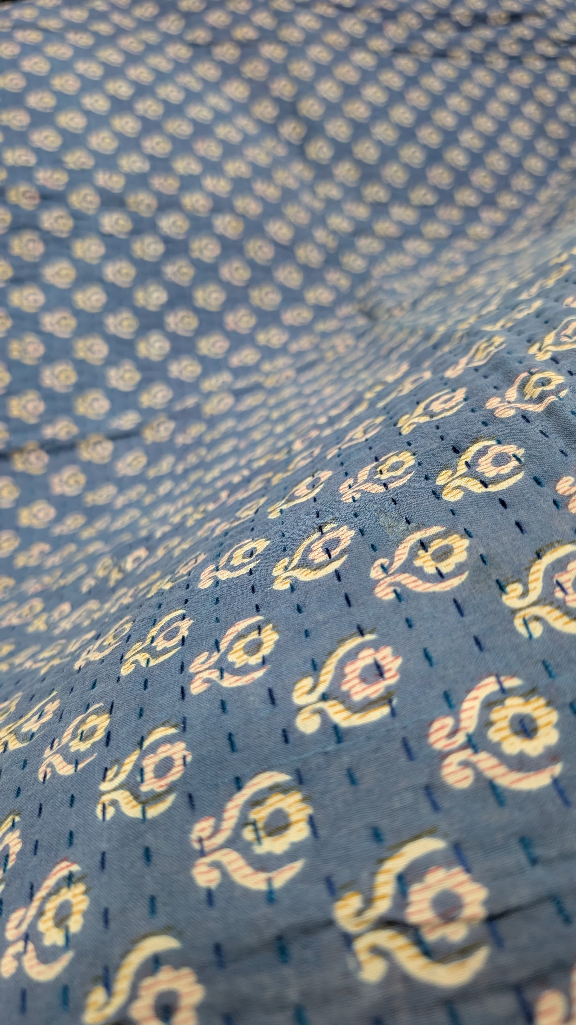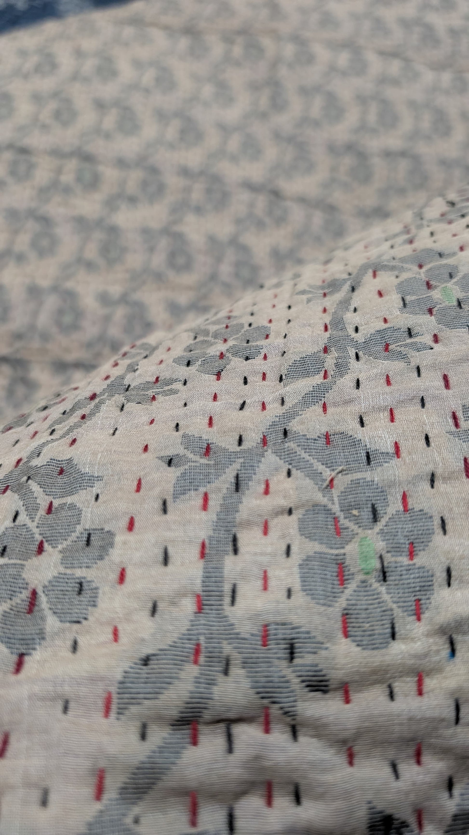 - 4 layers of soft sari cotton hand-quilted reversible with the signature Kantha running stitch.