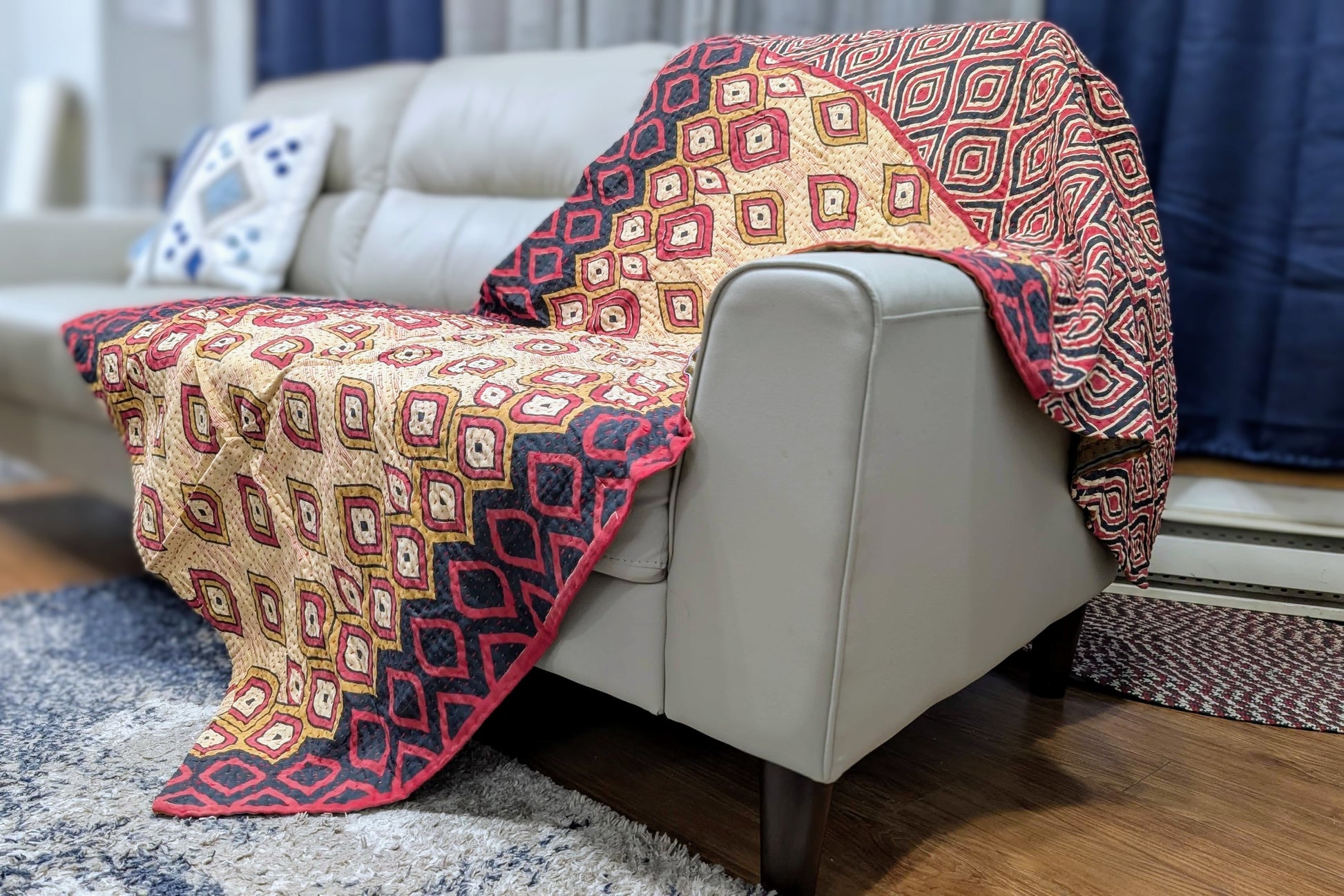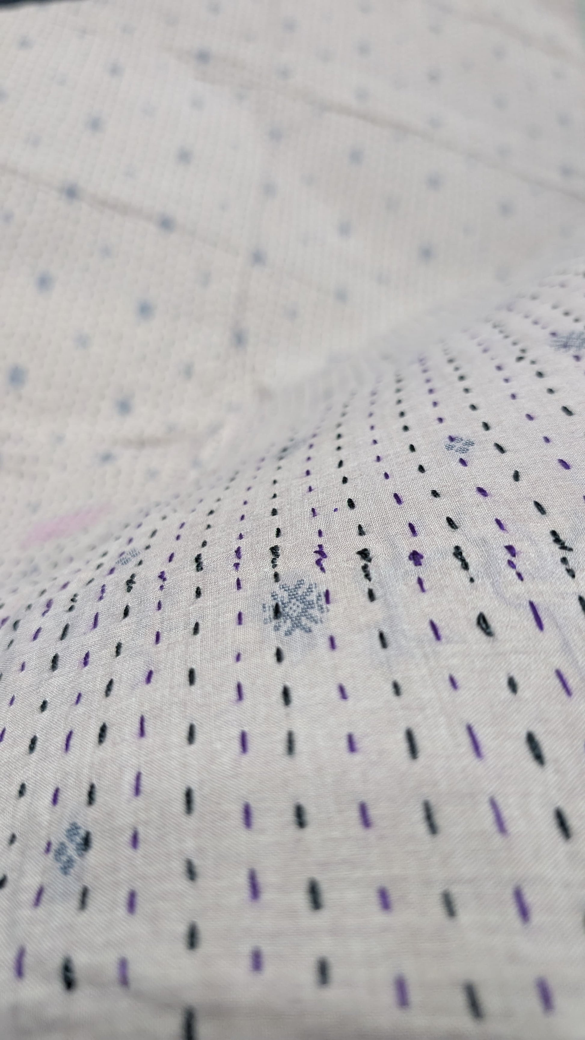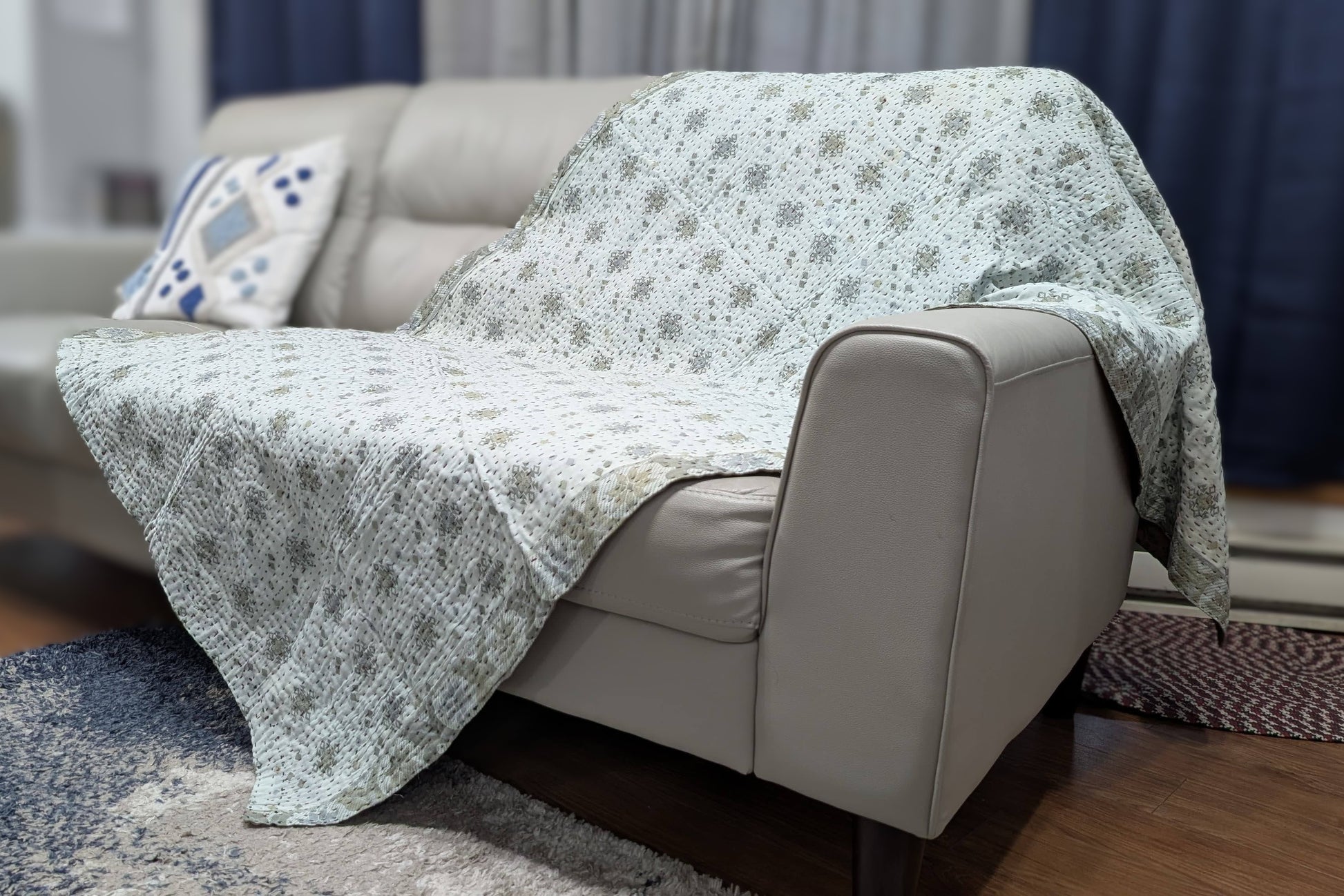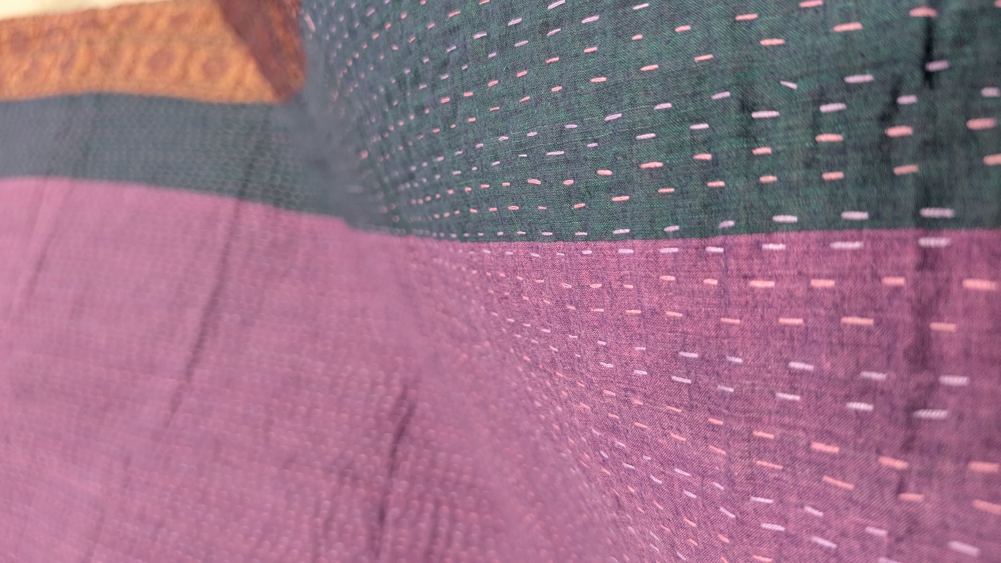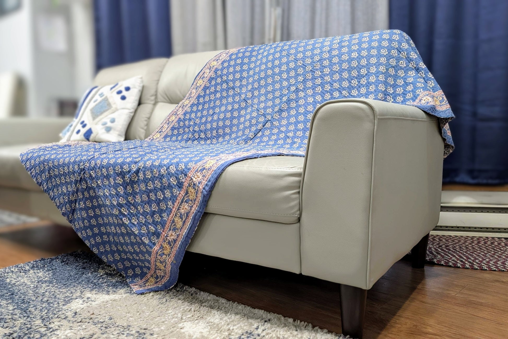- 4 layers of soft sari cotton hand-quilted reversible with the signature Kantha running stitch.