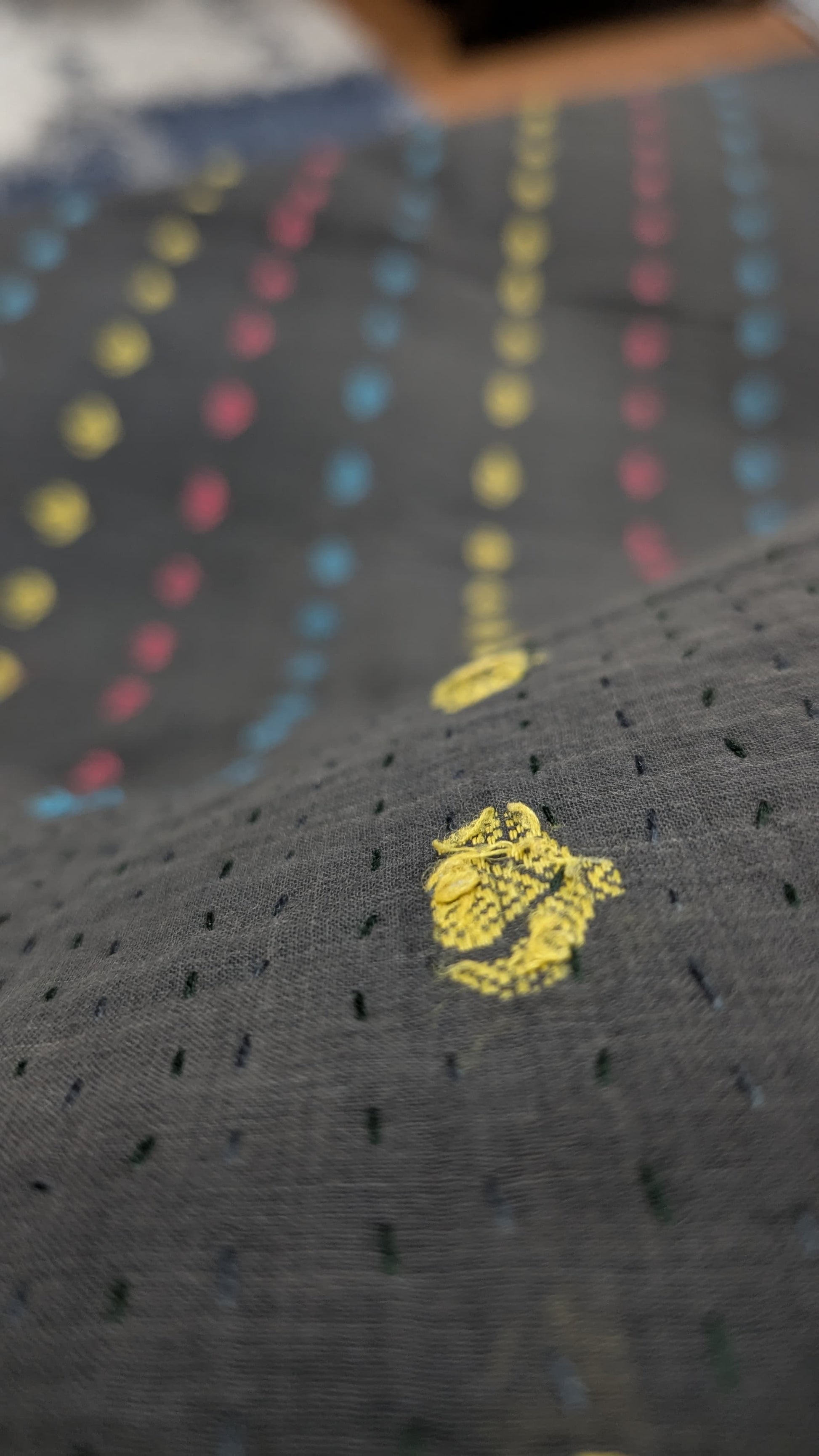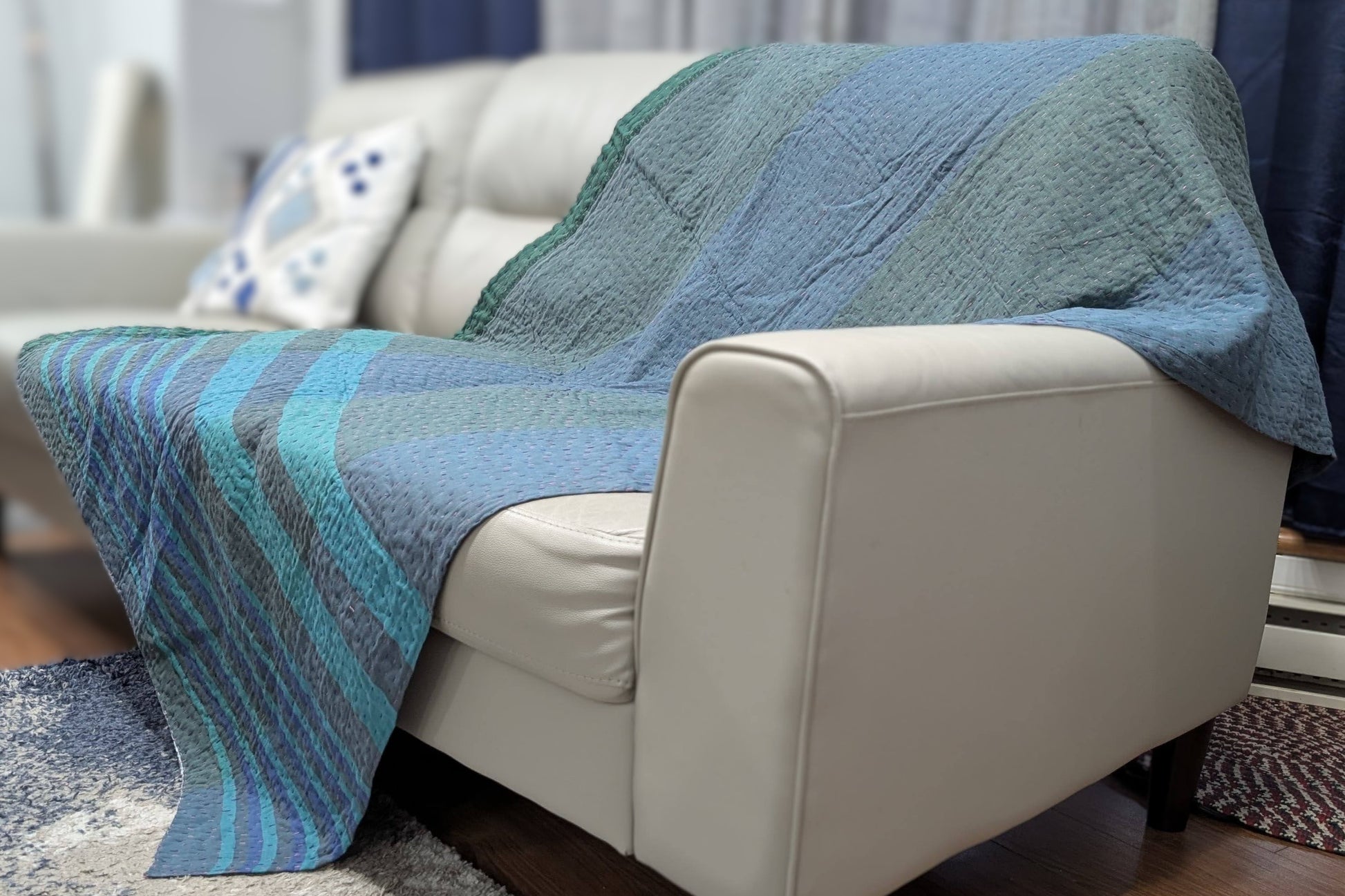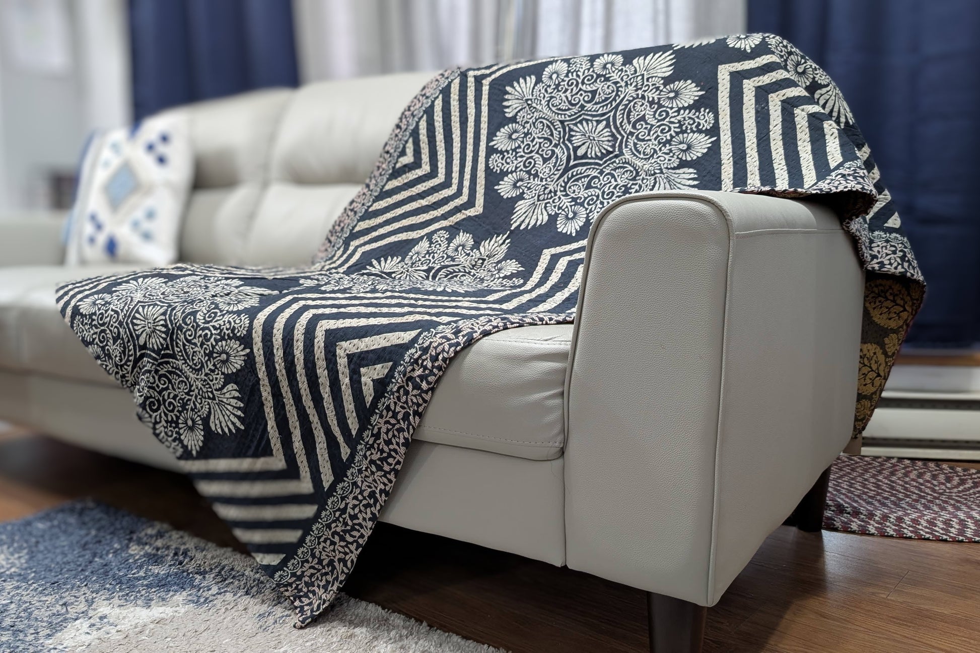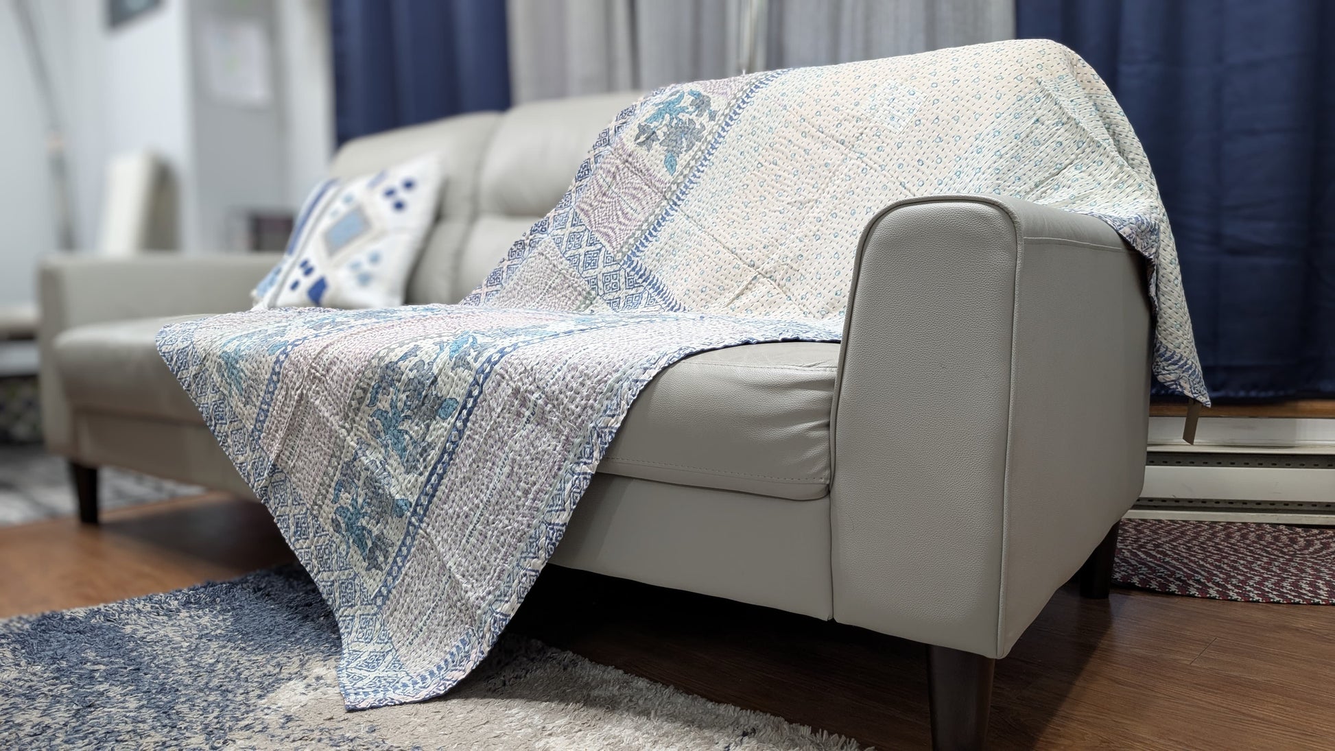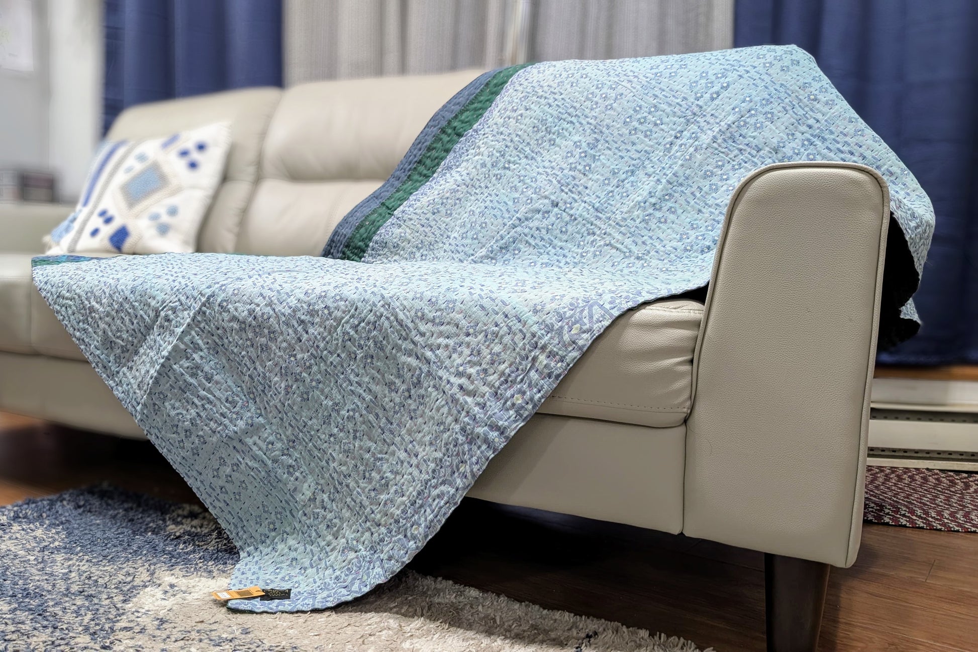 - 4 layers of soft sari cotton hand-quilted reversible with the signature Kantha running stitch.