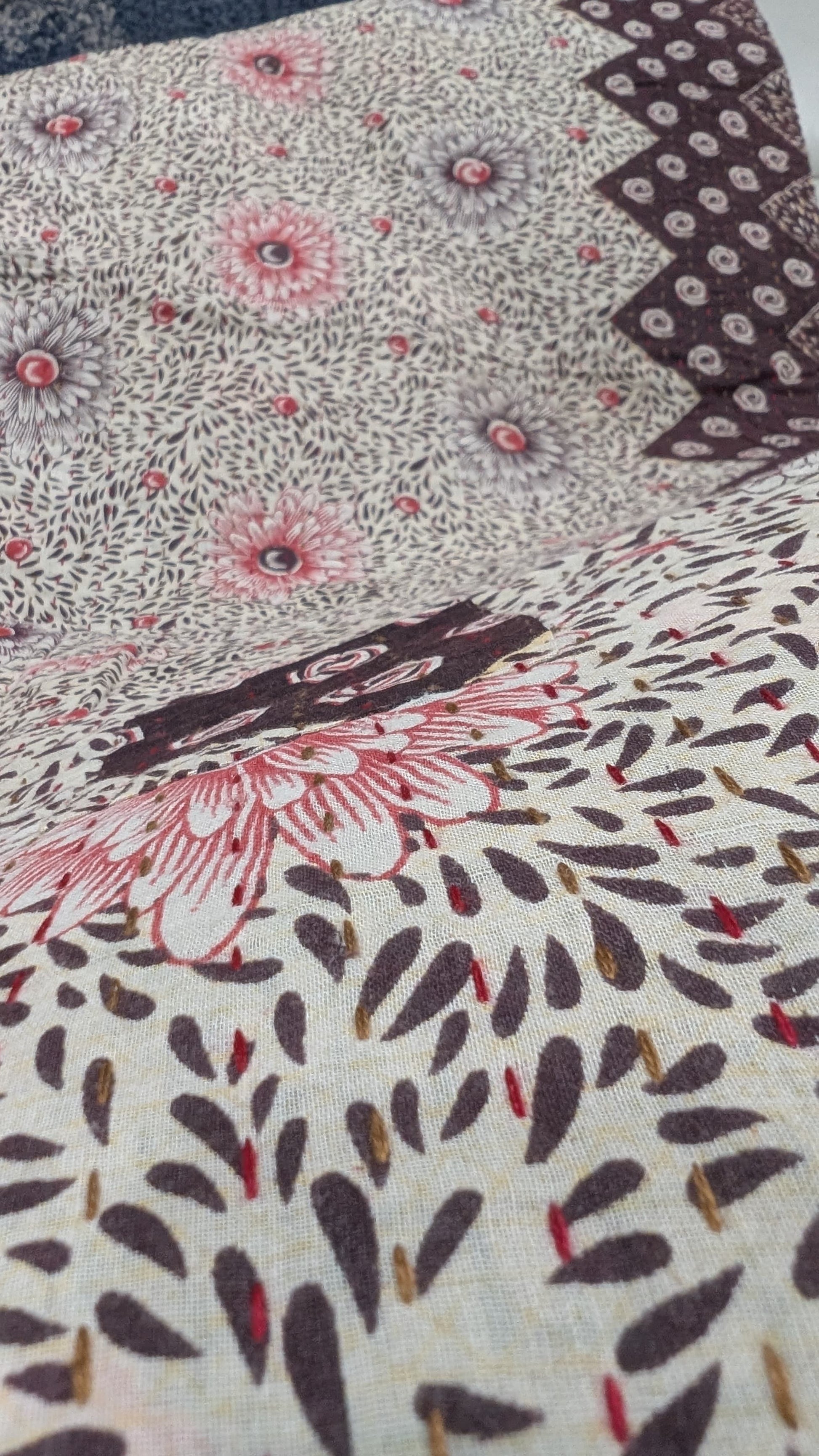 - Each fabric patch carries its former life's whispers—faded floral borders, delicate paisleys, and unexpected colour harmonies.