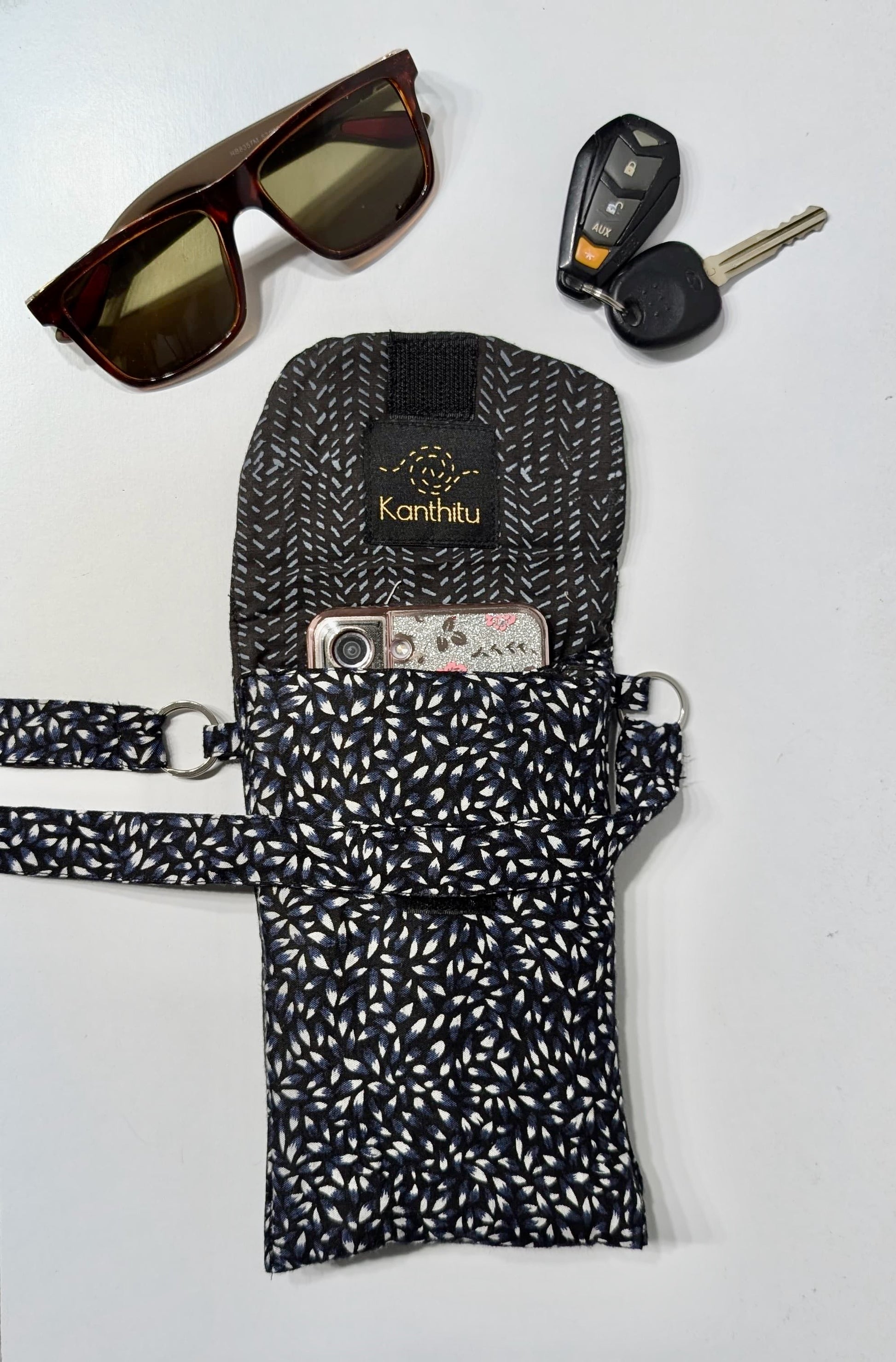 - Thoughtfully Sized: Fits phone, wallet, keys + small notebook.