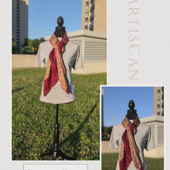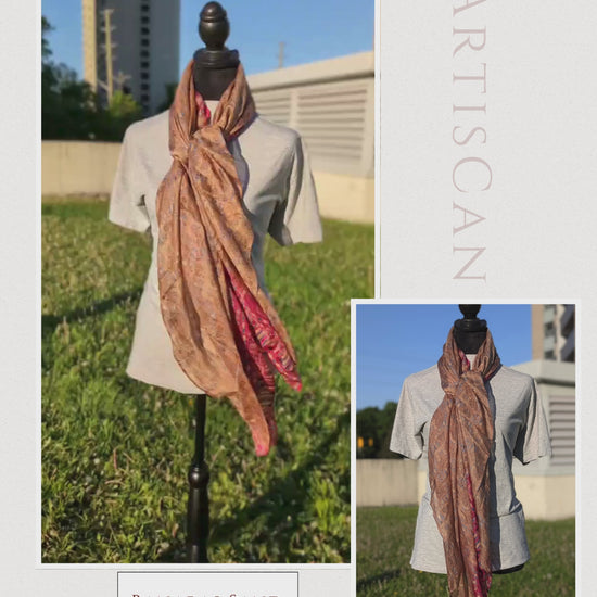 Drape yourself in two sides of splendor—a lustrous silk exterior conceals a hidden treasure: a lining embroidered with intricate Kantha motifs. This reversible scarf unites the opulence of silk with the soulful craftsmanship of recycled and upcycled sari textiles, creating a wearable conversation between luxury and legacy.